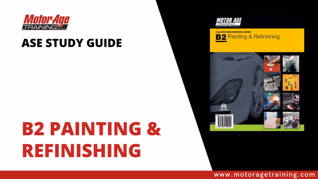 Get the knowledge, skills, and confidence you need to pass the ASE B2 Painting & Refinishing Certification Exam with Motor Age Training’s comprehensive study materials. Whether you prefer a printed book, eBook, or digital practice test, we provide flexible formats designed to fit your learning style and help you succeed on exam day and in the shop.
