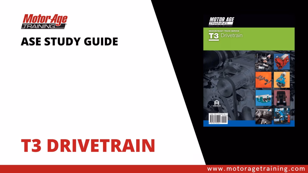 Get the knowledge, skills, and confidence you need to pass the ASE T3 Drivetrain Certification Exam with Motor Age Training’s comprehensive study materials. Whether you prefer a printed book, eBook, online video course, DVD, or a practice test, we offer flexible formats designed to fit your learning style.