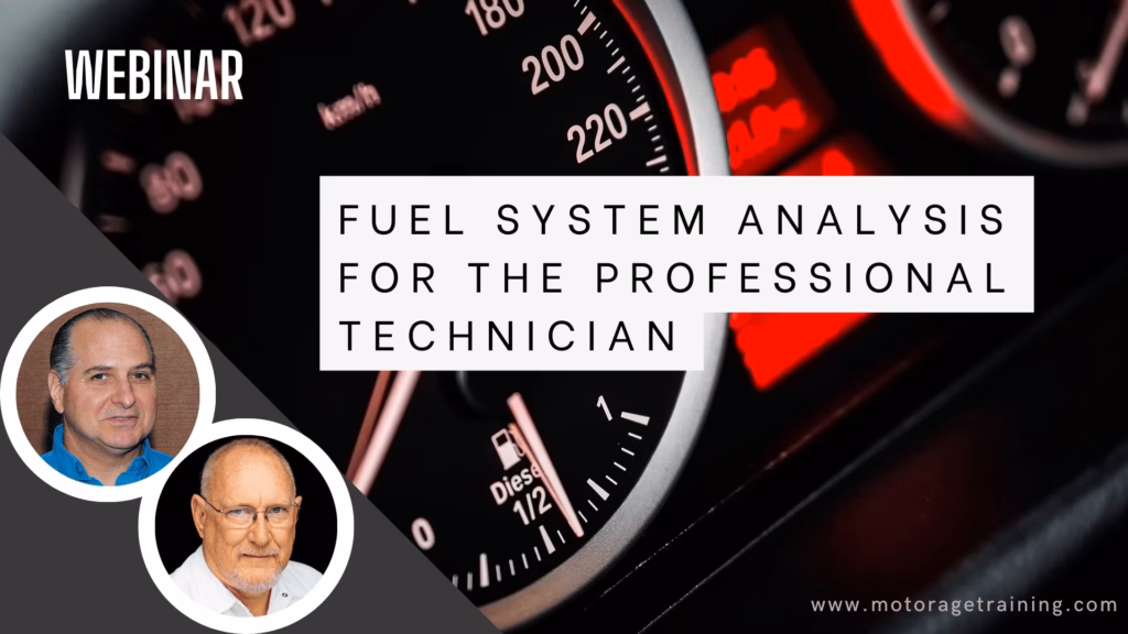 Join Pete Meier and G Truglia as they come together to present this webinar focused on advanced fuel system testing and inspection techniques. Do you know how to test the electrical and mechanical integrity of the various fuel system components? What common problems are techs facing today and how do you identify and correct them? Technicians today are dealing with a variety of fuel delivery systems from port injection to direct injection. Each have their own problems and testing needs. This webinar will focus on a variety of content from basic testing to advanced scope and scan tool tests. From fundamental fuel pressure and volume measurements to advanced scope voltage and current testing – there will be something for everyone in the last Motor Age/TST webinar of the year!